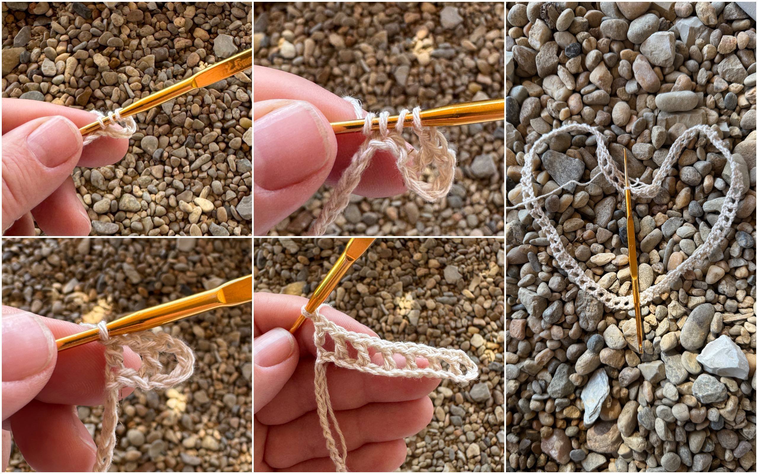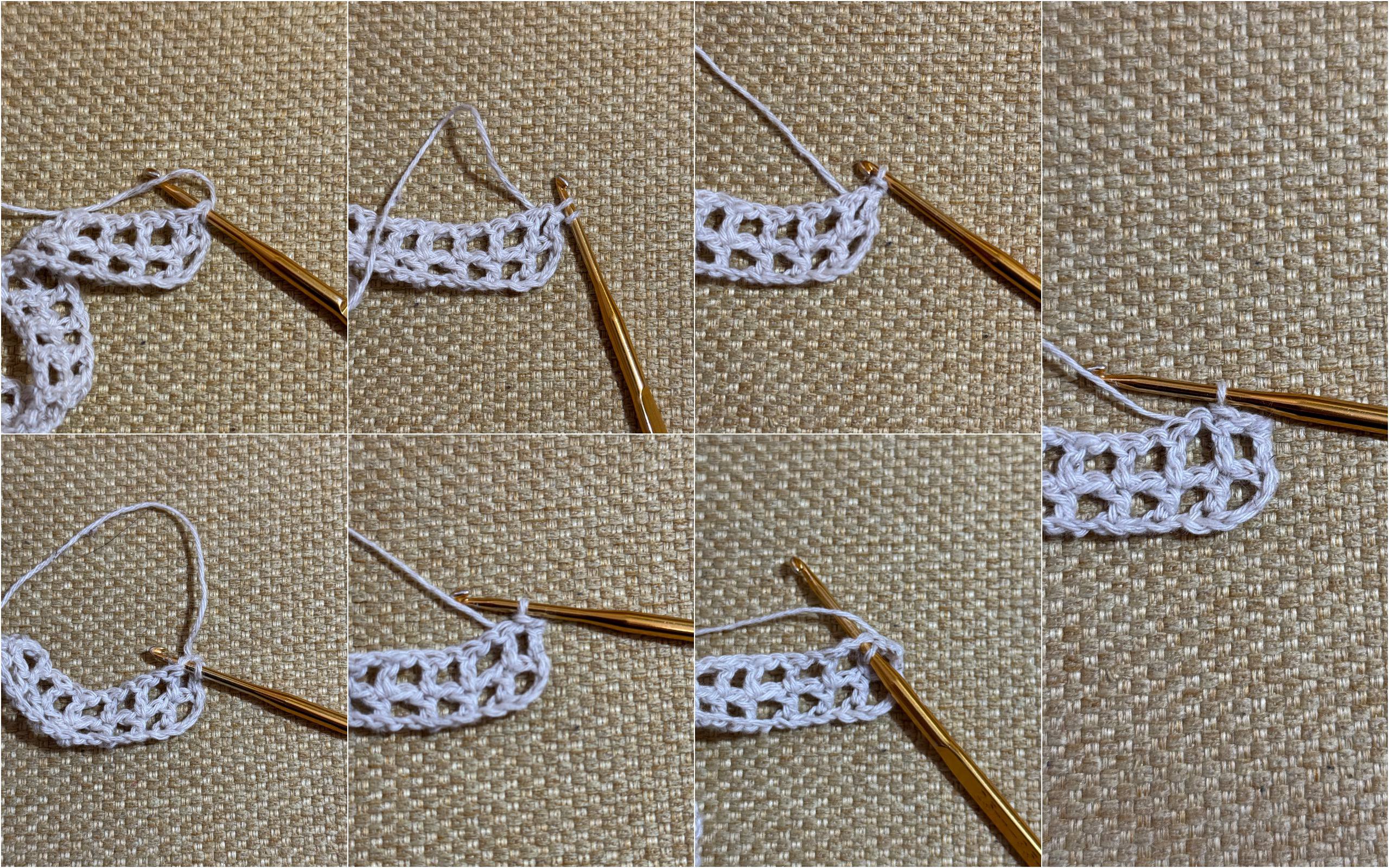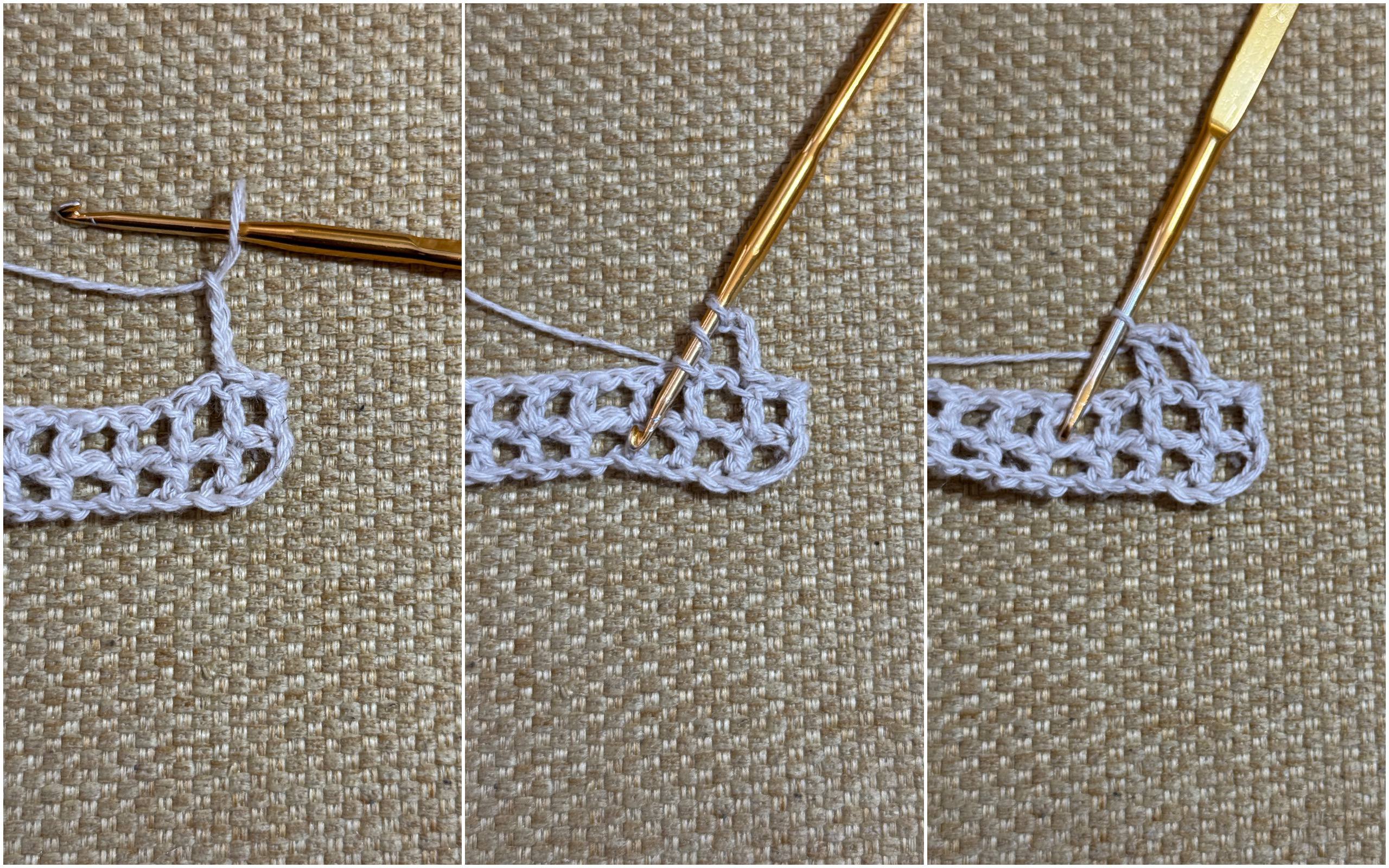 Затем наберите 4 воздушные петли подъёма и сформируйте первую ячейку нового ряда с помощью столбика с накидом.