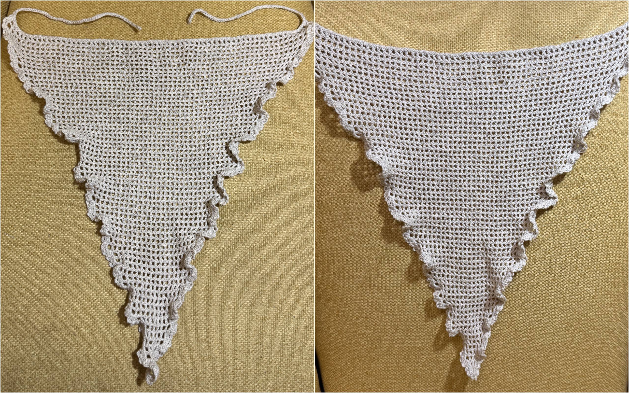 Основа косынки остаётся без обвязки, там будет крепиться завязочка.