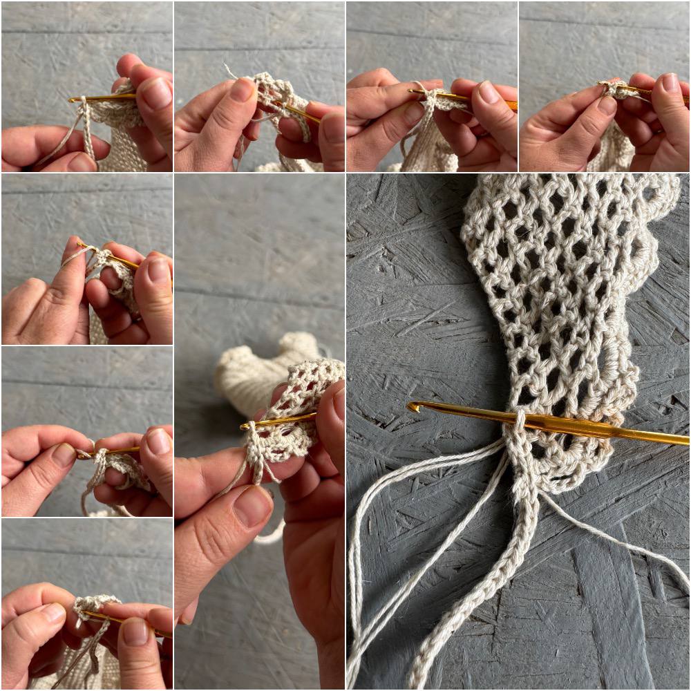 Для первого этапа обвязки я выбрала столбик без накида, обвязывающий край работы.