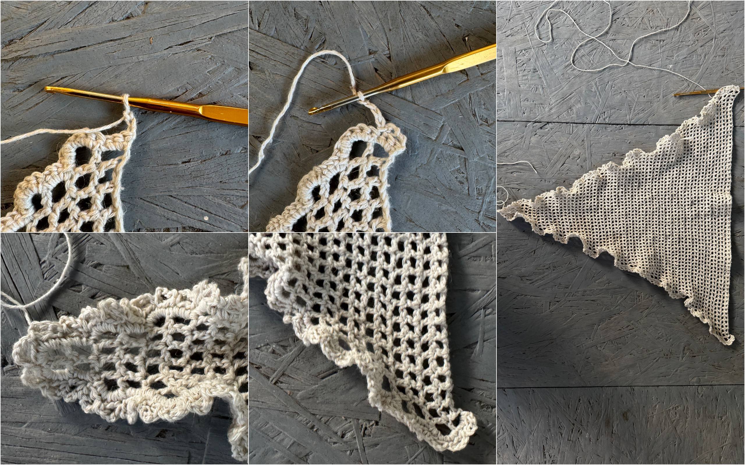 После такой плотной обвязки для более воздушного узора я решила добавить простые дуги из воздушных петель.