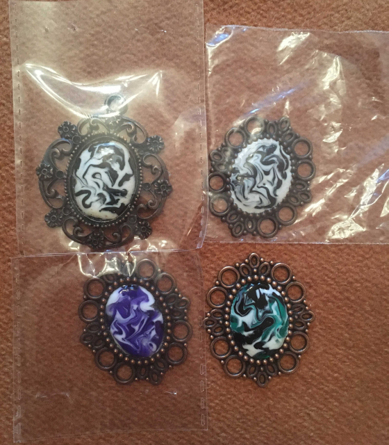Например, в такую бижутерию: основа покупная(сплав состав не знаю, но написан гипоаллергенен и не требуется доп документов, тут проверяйте сами, обычно носится поверх одежды и проблем не возникало) остальное акрил и немного магии, кулончики делает моя матушка.Делается причём штучно, т.е 1но изделие выпекается отдельно от других, и потом есть несколько секунд, чтобы сделать красивый узор, а после моя обработка,.Цена оправдана, для бижутерии ручной работы.