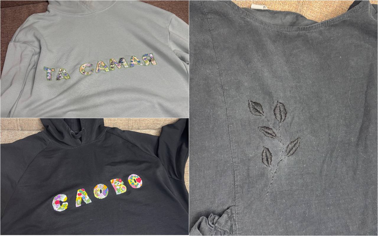 Также можно оформить вышивку на плотном кусочке фатина в тон материала и нашить на место одежды с пятном.