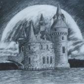 Картина «Ночь в сказочном городке» написана акрилом на холсте, холст на подрамнике 100%, размер 30х40 см.,можно использовать без рамки.