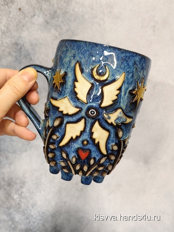 Купить Керамическая кружка Два Серафима в небе ночном , Кружки и чашки, Посуда ручной работы. Мастер Ким Светлана (Kisvva) . глиняная кружка
