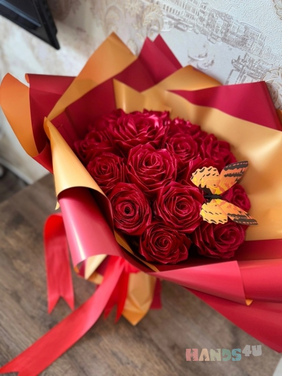 Самые удивительные букеты—это букеты из атласных лент, они набирают свою популярность. Они приходят на замену живым цветам , многие видят в них больше плюсов. А именно : это их долговечность и стойкость , такой букеты вы не выбросите через неделю❗️