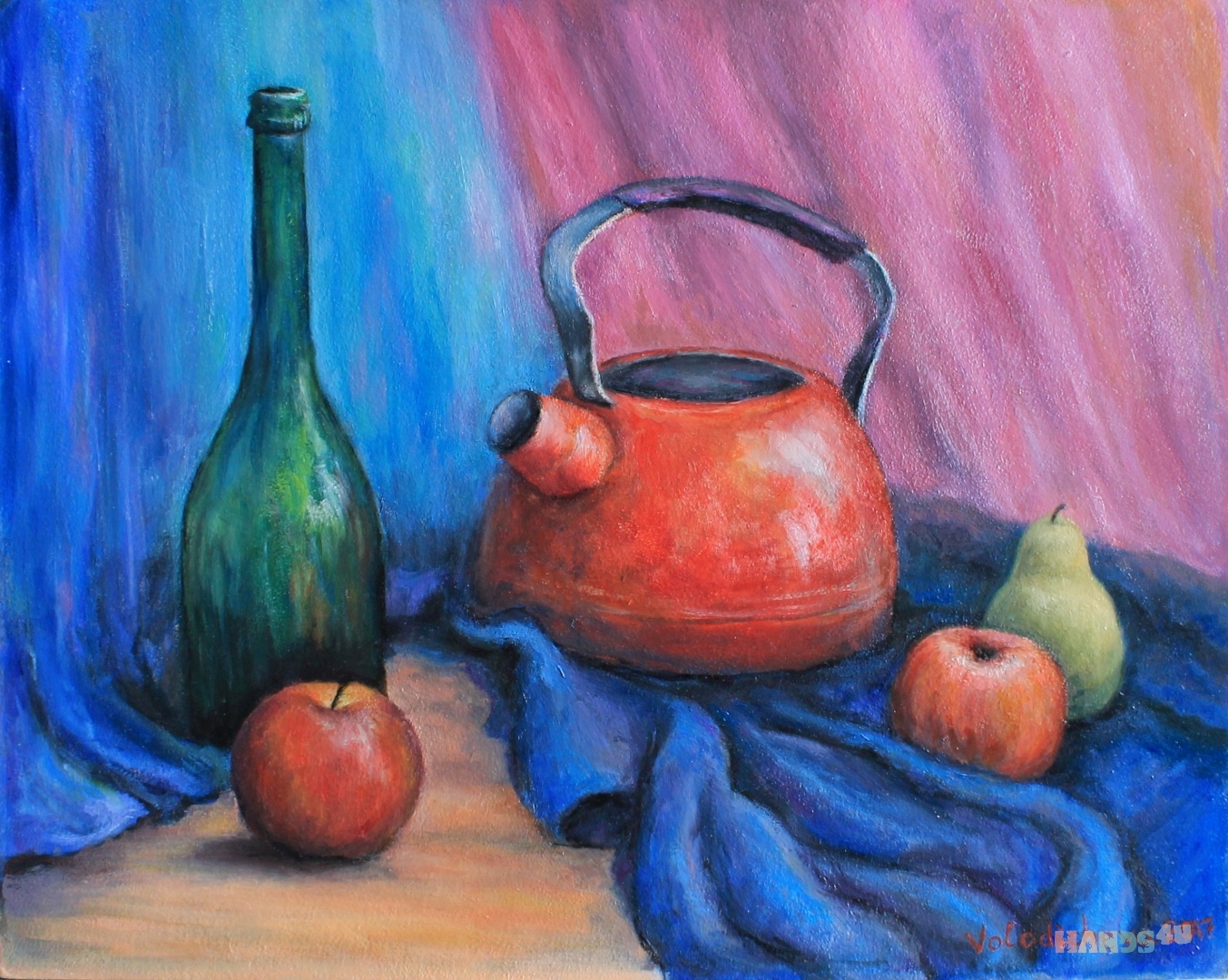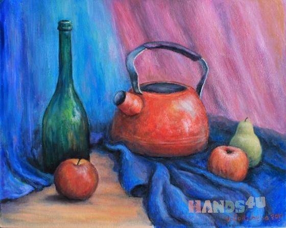 "Натюрморт с красным чайником". 50*40, масло, картон