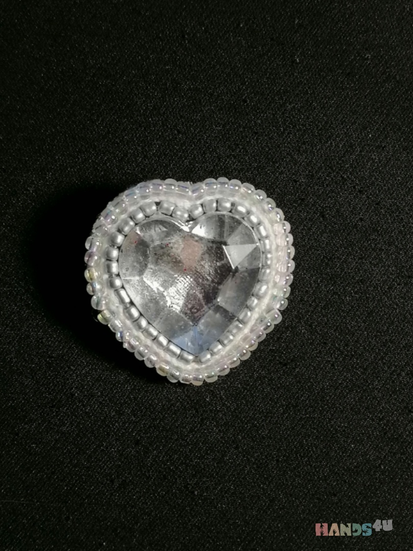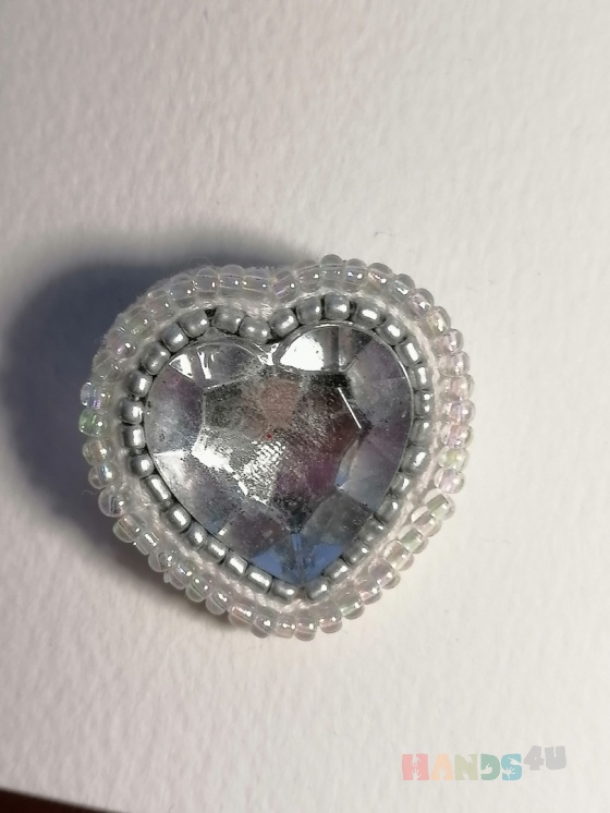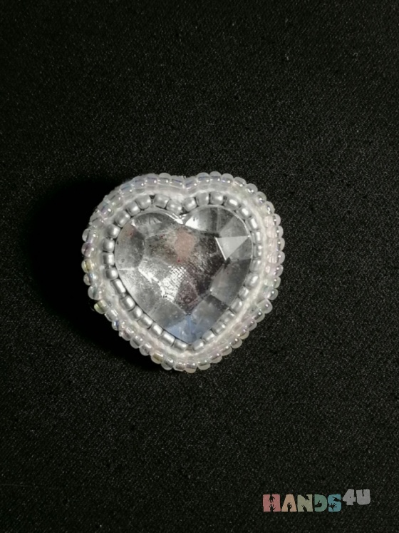 сердце · сердечко · любовь · белый · страза · мулине · день святого валентина · подарок на день святого валентина · брошь ручная работа · серебрянный