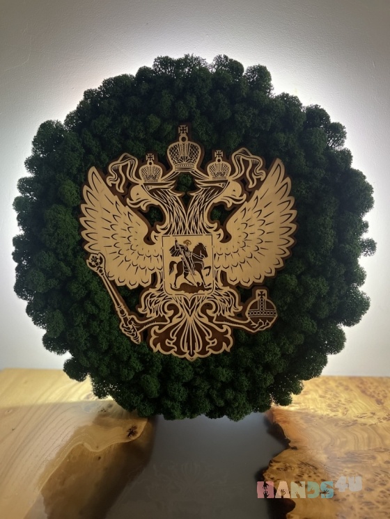Герб России со стабилизированным мхом и подсветкой.