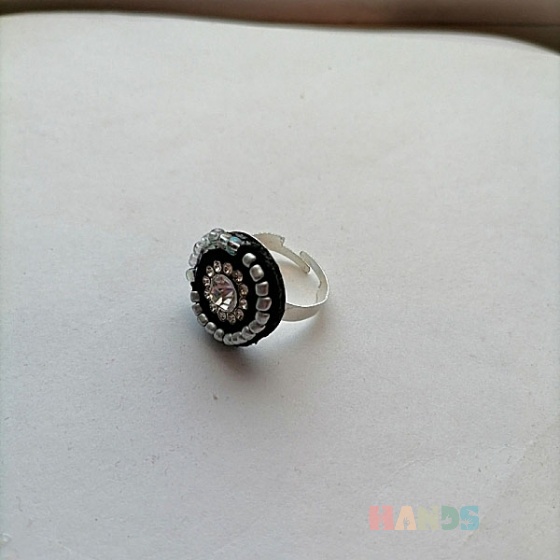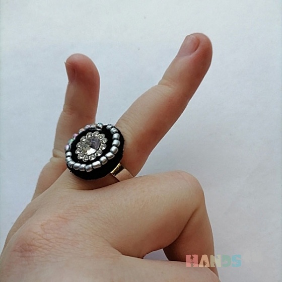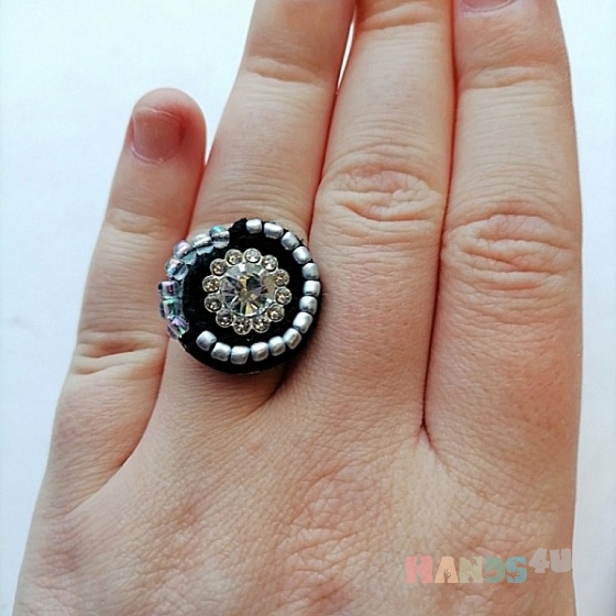 кольцо · авторское кольцо · стразы · мулине · бисер · авторское украшение · белый · чёрный · серебро
