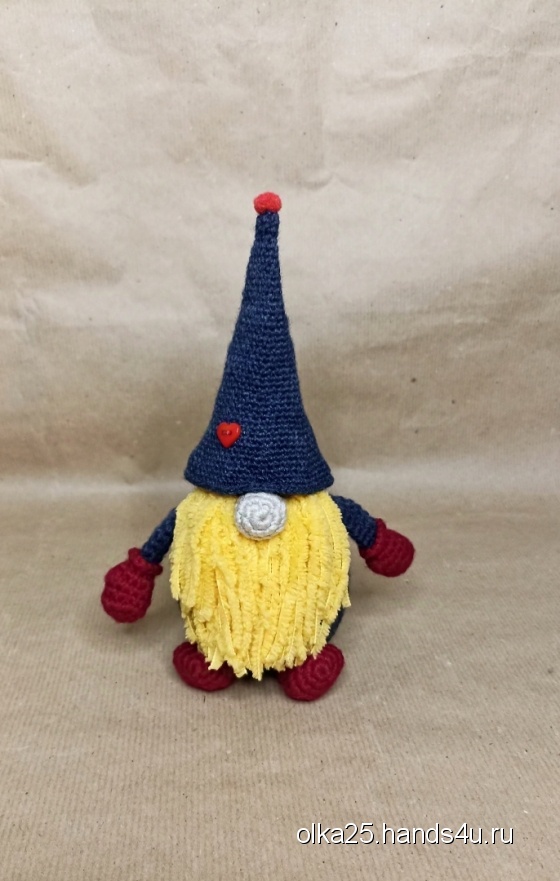 Скандинавские гномы (ниссе, томте, тонтту) - забавные человечки маленького роста. Носят колпачки, которые скрывают их лица. Но мой гномик не стесняется и своё личико демонстрирует. Колпачок снимается.