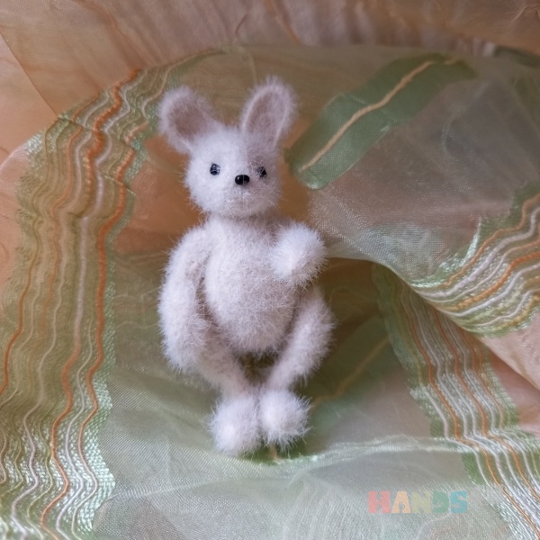 Игрушка ручной работы, связана крючком из акриловых ниток, имитирующих мех. Изделие набито натуральной шерстью, лапки подвижные на проволочном каркасе (синель), глаза и нос из бисера. Игрушка не предназначена для детских игр, носит чисто декоративный характер, может быть использована, как елочное украшение.