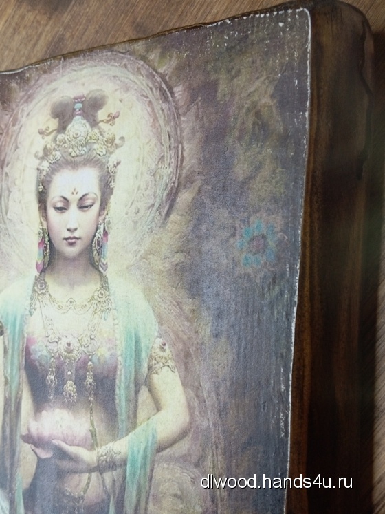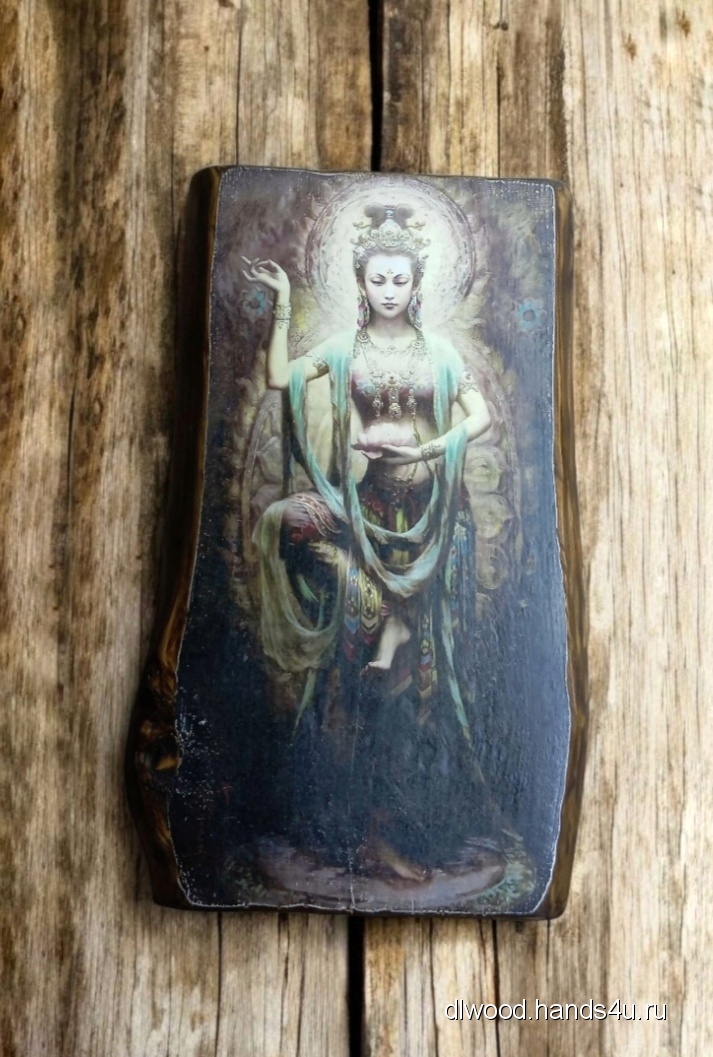 Картина на дереве Гуань Инь - несущая жизнь - это 100% ручная работа!