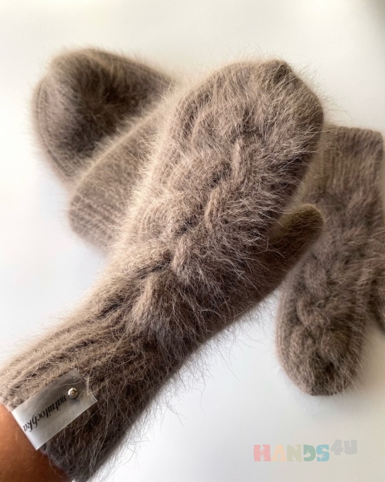 Купить Вязаные варежки с косой из ангоры, Варежки, Варежки, митенки, перчатки, Аксессуары ручной работы. Мастер Наталья Ведяева (natnitochka) . варежки