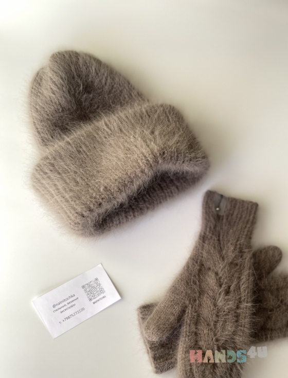 В наличии вязаная шапка с двумя отворотами из пушистой и мягкой ангоры 80. Самая теплая зимняя модель.