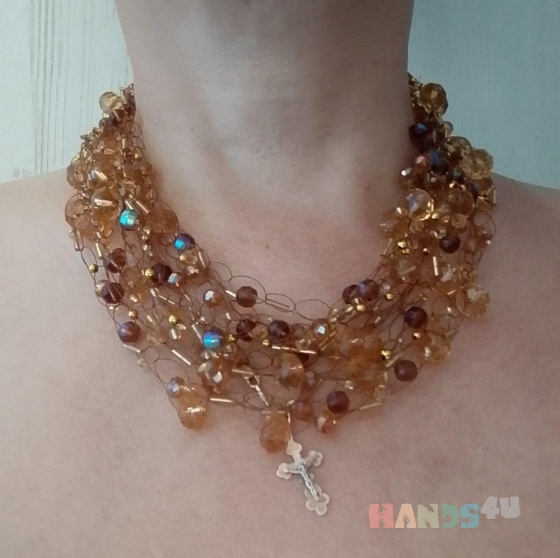 Колье авторской ручной работы из натурального топаза и фурнитуры на леске