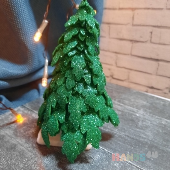 Ёлочка высотой 14 см из фоамирана будет прекрасным украшением стола в офисе и подарит праздничное настроение не только Вам, но и окружающим.