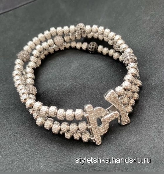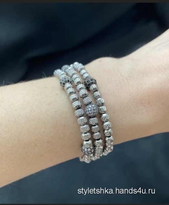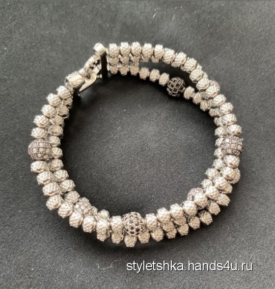 Браслет из бусин из нержавеющей стали и бусинами с цирконами. Возможно изготовление под заказ по вашим размерам.