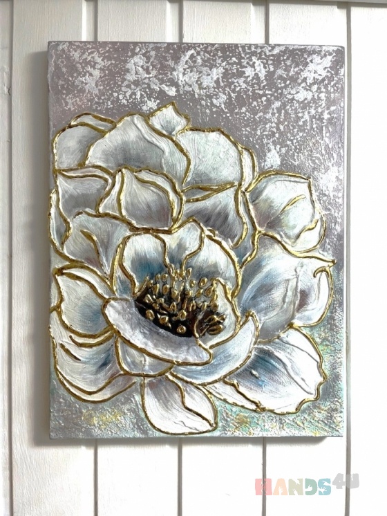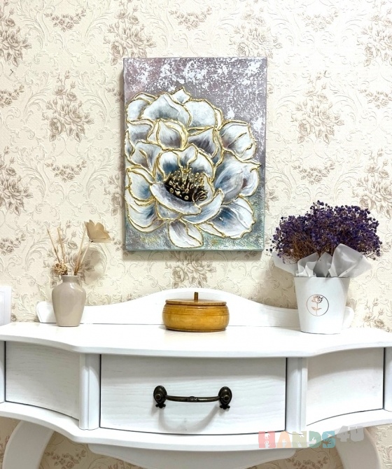 Интерьерная картина ручной работы, выполненная в современной технике с использованием текстурной пасты, акрила и золотой потали на качественном льняном натянутом холсте размером 30 х 40 см. Это произведение станет прекрасным украшением вашего интерьера, подчеркнёт индивидуальность пространства и создаст особую атмосферу изысканности и стиля.