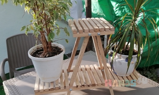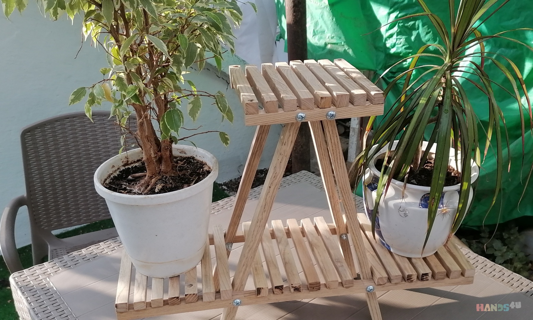 Подставка для цветов из массива дерева лиственных пород (бук, вяз, ясень) Этажерка спокойно выдерживает нагрузку в 40 кг. Размеры высота 45 см, ширина 20 см, длина верхней полки 20 см, нижней 60 см.По желанию покупателя могу вскрыть морилкой, лаком, воском, маслом, сделать обжиг.
