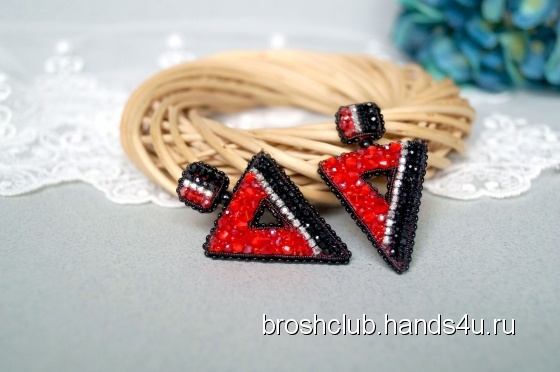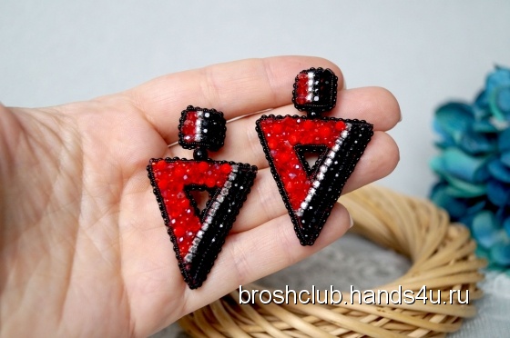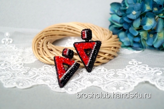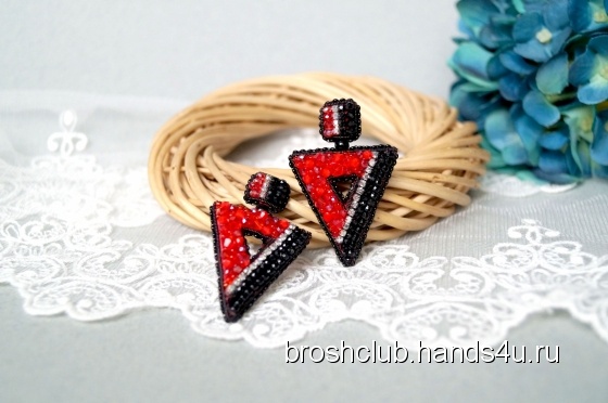 авторские серьги · бисерный серьги · серьги-гвоздики · серьги треугольники · серьги красные · серьги черные