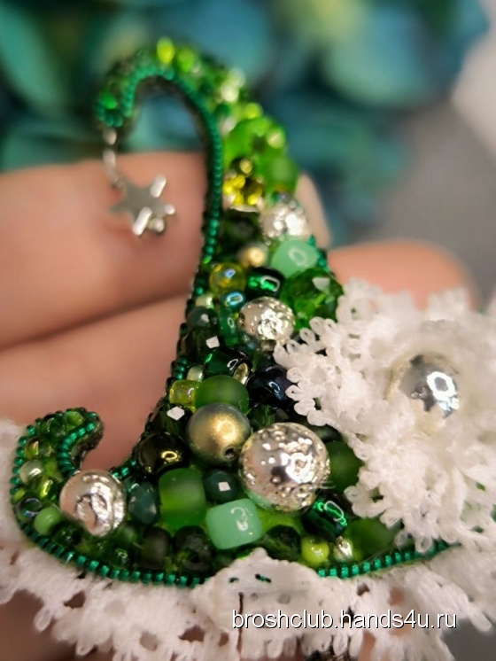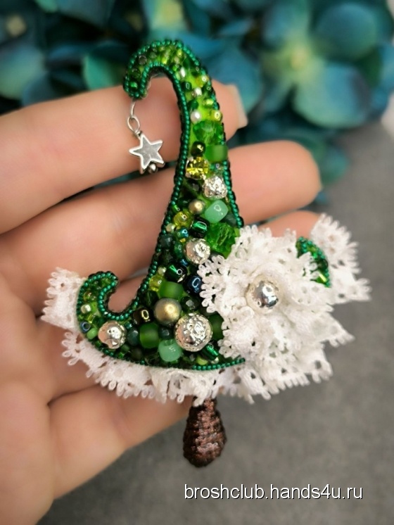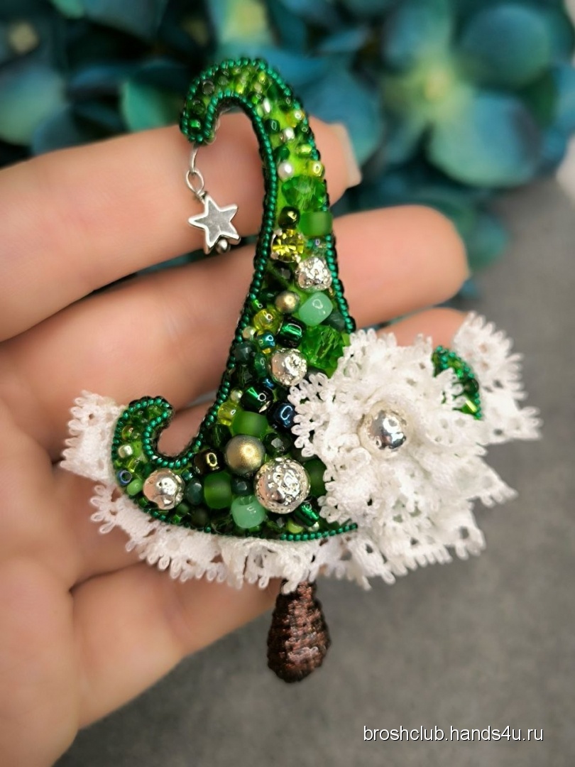 Купить Брошь Елка в кружевах зеленая с бусиными лава ( 4 цвета внутри), Вышивка, Бисер, Броши, Украшения ручной работы. Мастер Ольга (BROSHCLUB) . елка