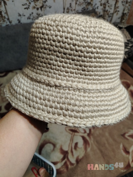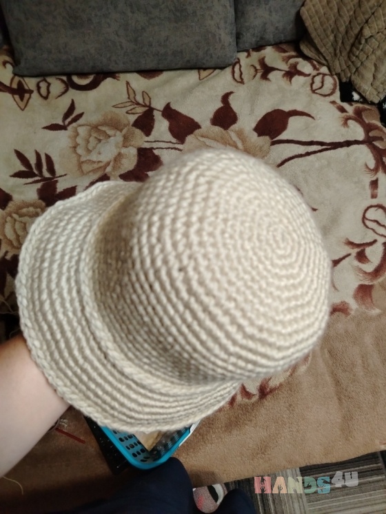 Шляпа теплая. Изделие можно носить осень- зима-весна. Размер 55-56см. Пряжа 80%акрил, 20%шерсть. Цвет светлый беж.