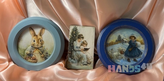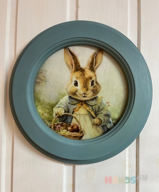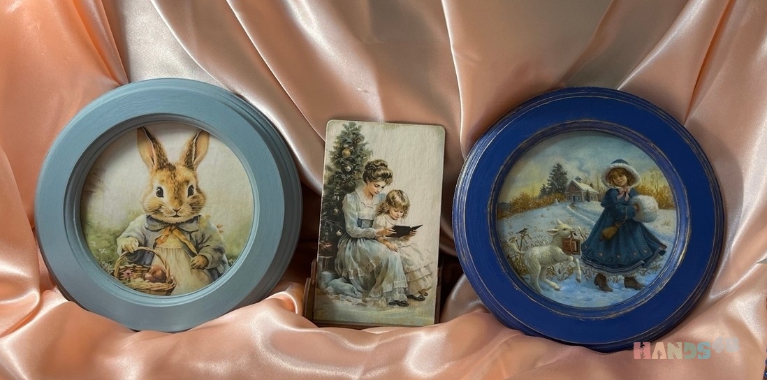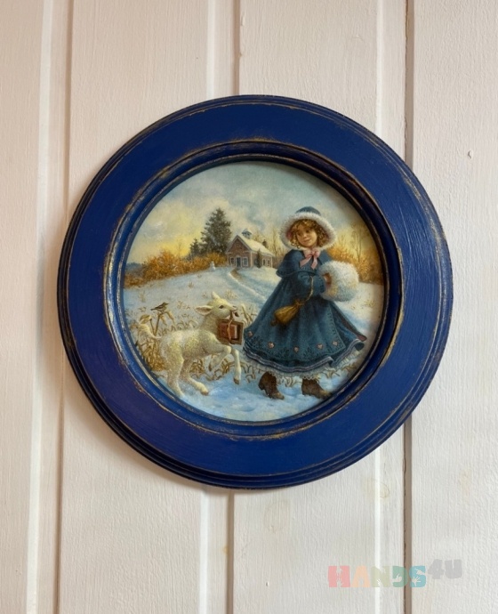 Декоративная картина в круглой раме в технике декупаж с прорисовкой