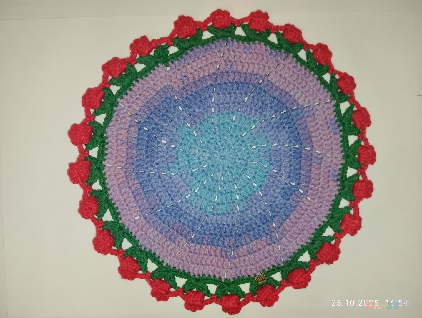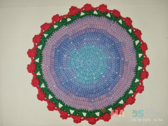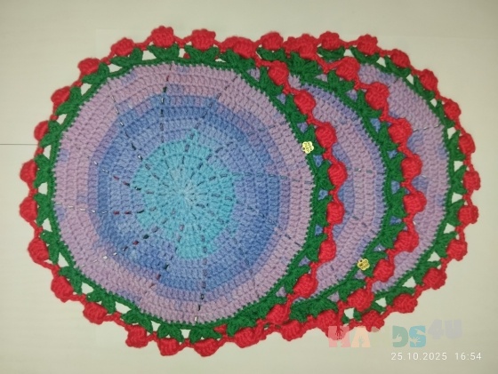 Вязаная салфетка под горячее "Тюльпаны". Ручная работа, диаметр 17 см. В наличии 3 штучки. Прекрасный декор для чаепития, или кофе. Скрасит интерьер